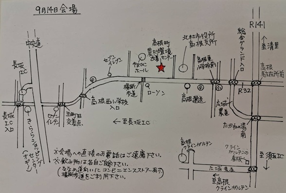 - 車でお越しのかたも、事前に主催者にお知らせ頂けると助かります(大体の参加人数が把握できるため)。