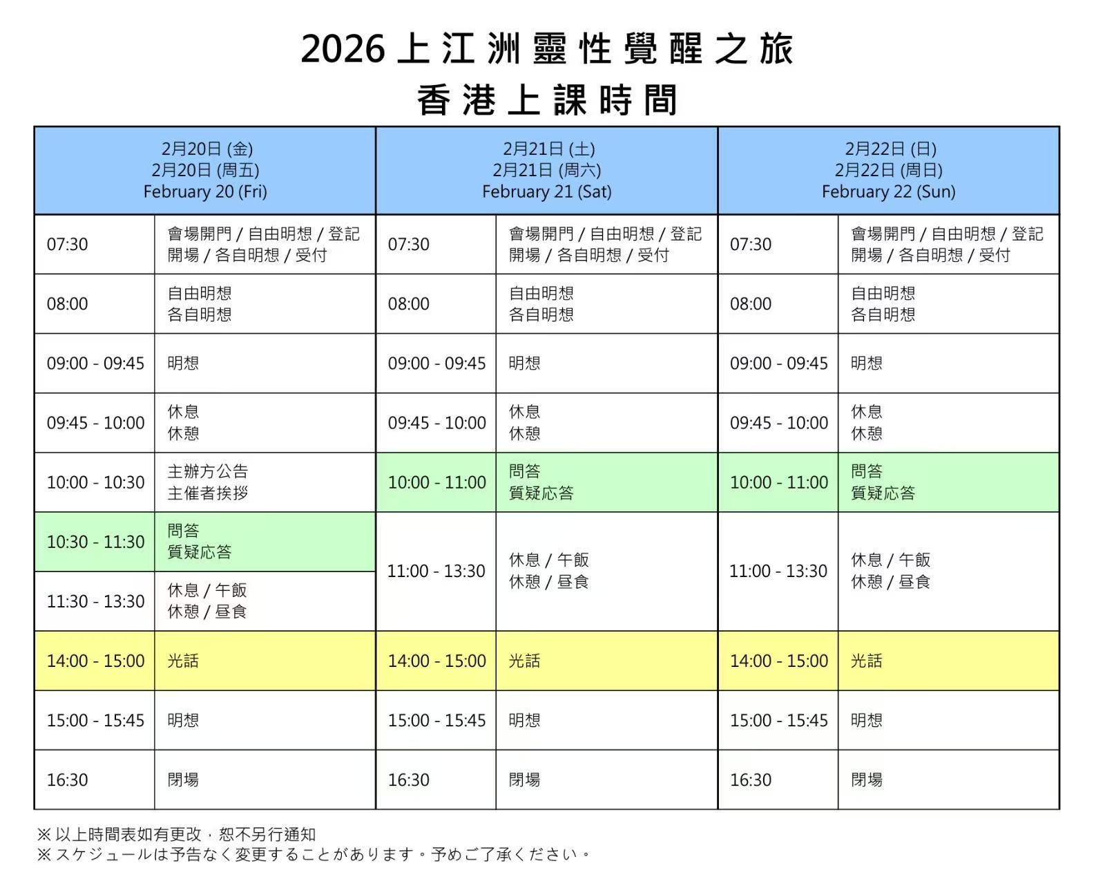 | 香港课程 | 2月20日~22日(周五~周日) | ・课程的通知 | ・课程表 |